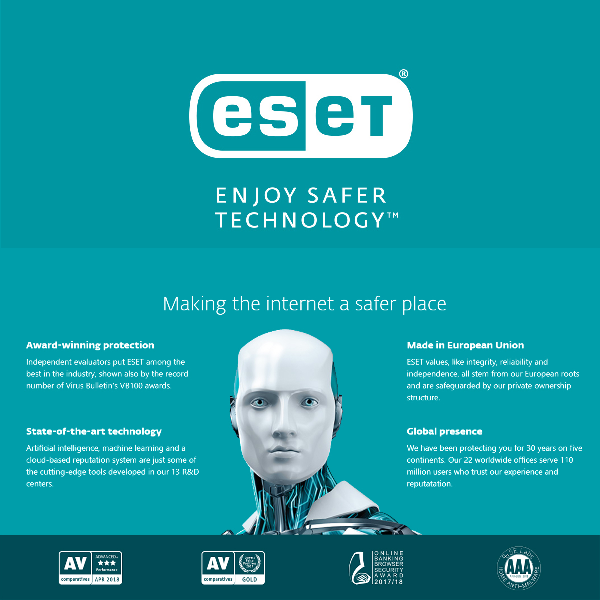 Making the internet safer for you to enjoy- Explore the great online, securely protected by ESET’s award-winning detection technology. It’s trusted by over 110 million users worldwide to detect and neutralize all types of digital threats, including viruses, rootkits, worms and spyware. It also protects against techniques that seek to evade detection, and blocks targeted attacks and exploits.