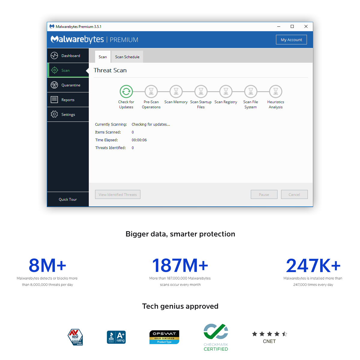 Lightning-fast Hyper Scan mode targets only the threats that are currently active. Faster analysis. Still gets results. Run a scan in the background while you download a video. It’s done by the time you’re ready to watch.