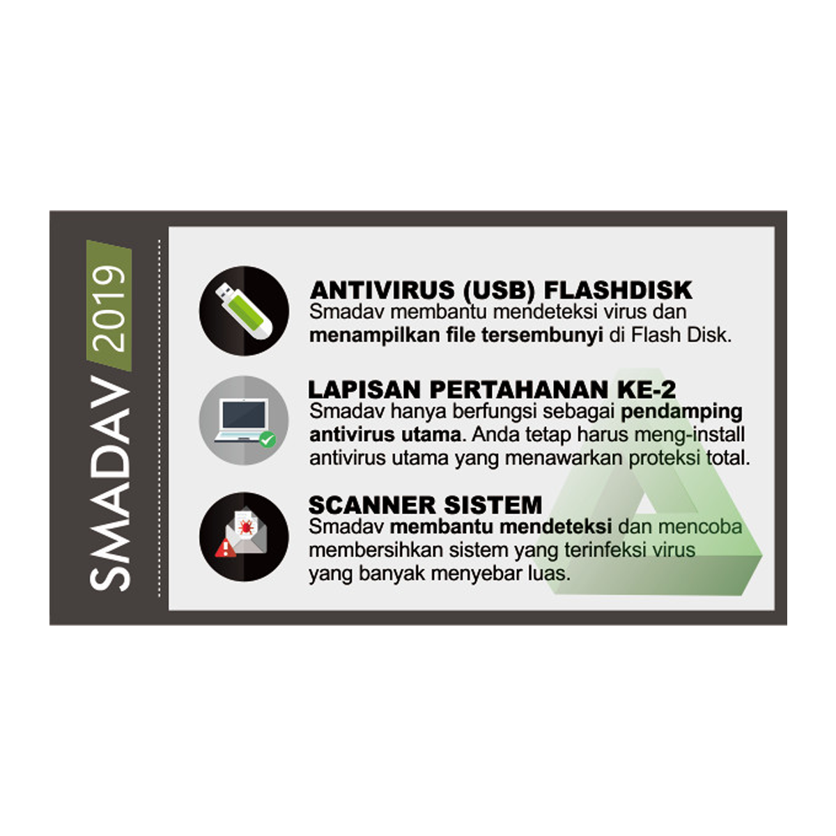 Smadav is an additional protection (second layer) antivirus, and specialize in protecting + Enhancement of terms and agreements for purchasing Smadav Pro